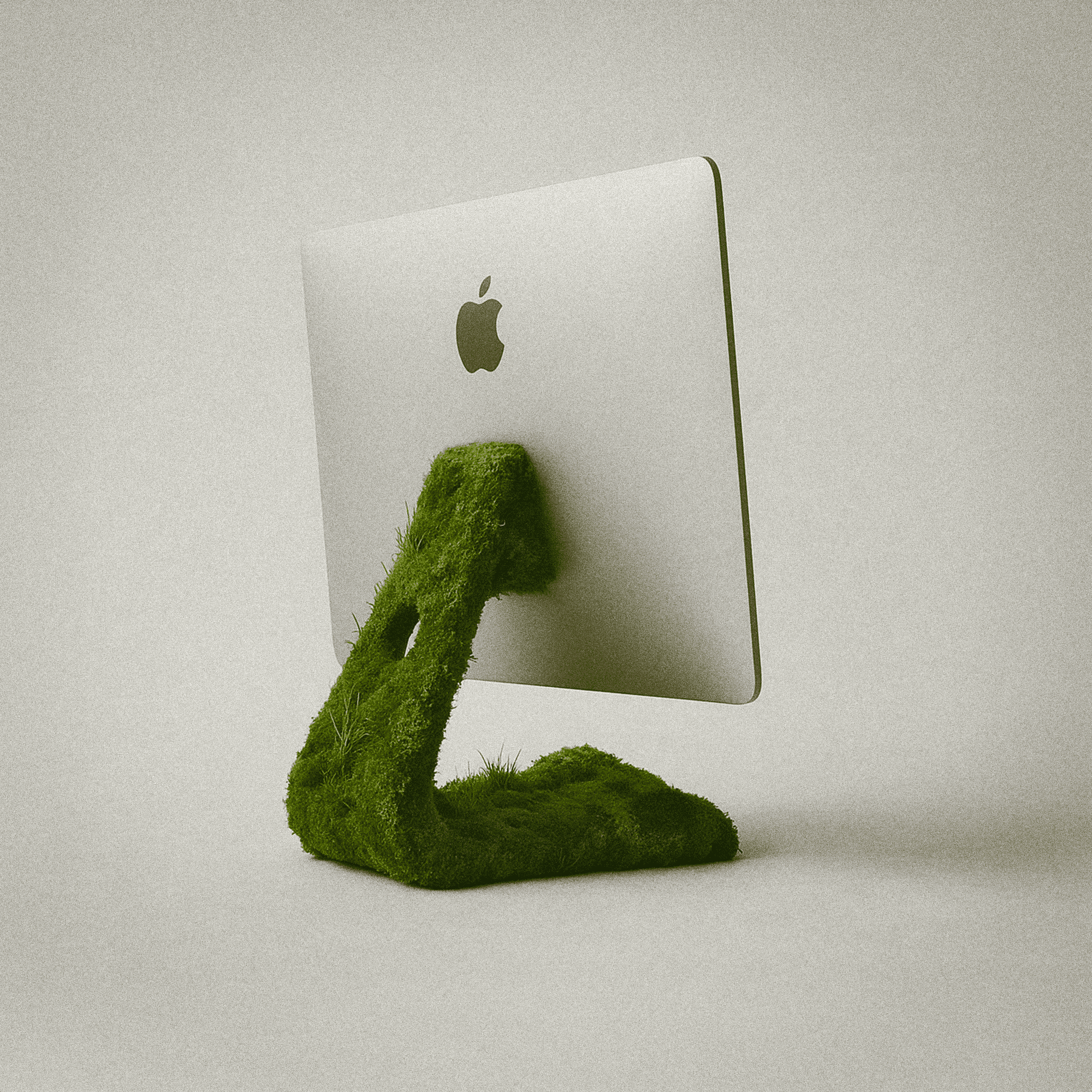 Brushed aluminium, live moss, resin-coated base
